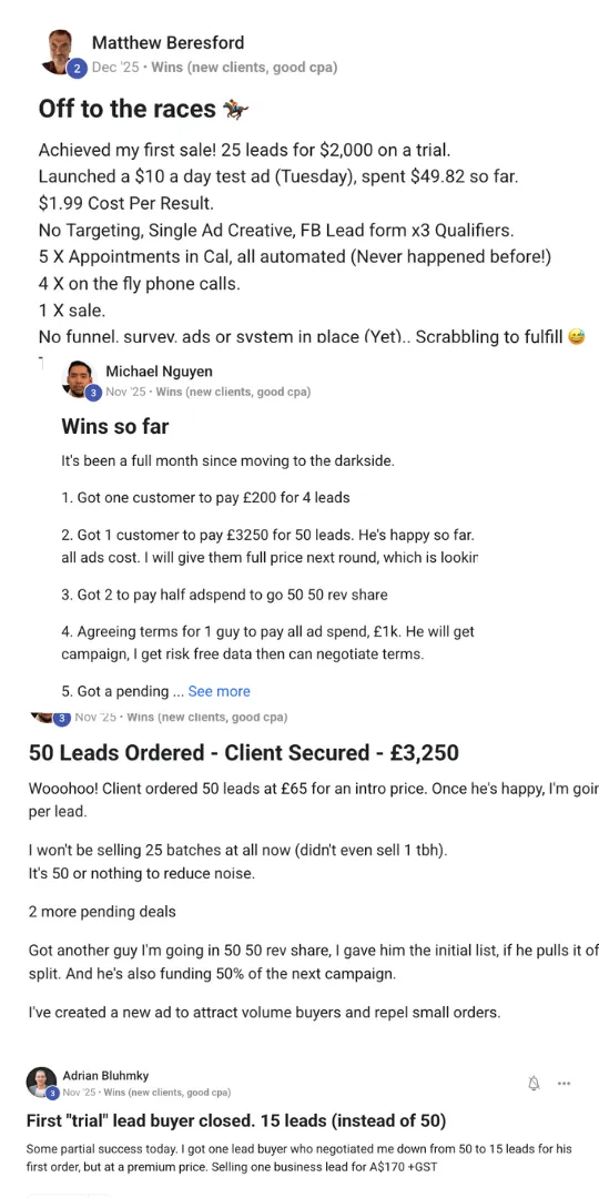 You watch your lead costs drop while conversion rates soar, then sell those same leads to buyers at 2-3x markup with 50-60% profit margins (usually $50, $100 or $200+ per lead).